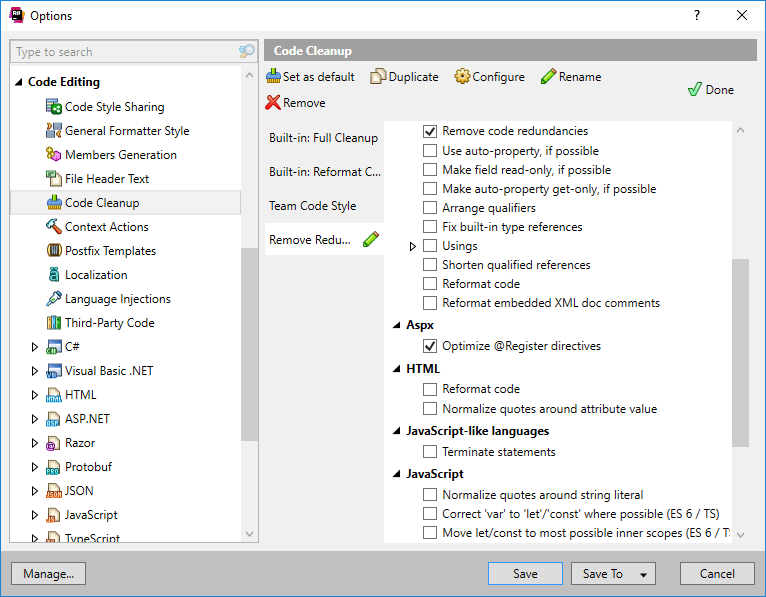 - механизм ReSharper — для синхронизации настроек форматирования и именований внутри команды, с возможностью комбинировать программные и пользовательские настройки;